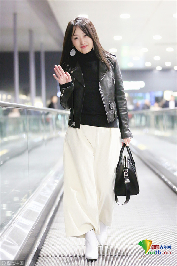 12月9日,上海,楊鈺瑩現(xiàn)身上海虹橋機(jī)場(chǎng),她身著黑色皮衣的她搭配白色直筒褲,手提大牌包優(yōu)雅知性,長(zhǎng)發(fā)披肩溫柔甜美似少女,見(jiàn)跟拍主動(dòng)揮手示好,保養(yǎng)得當(dāng)?shù)乃笮阊┌准∧w,不顯年紀(jì)!