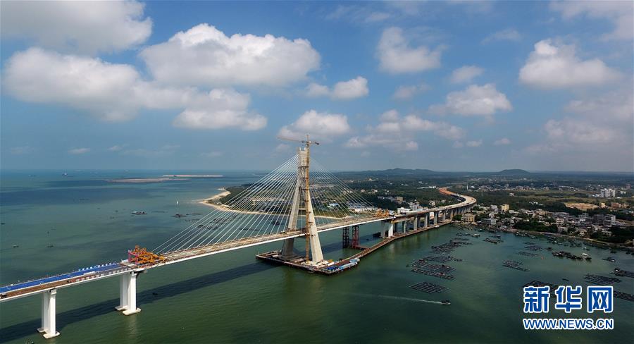 這是11月3日無(wú)人機(jī)拍攝的海南鋪前大橋。 新華社記者 郭程 攝
