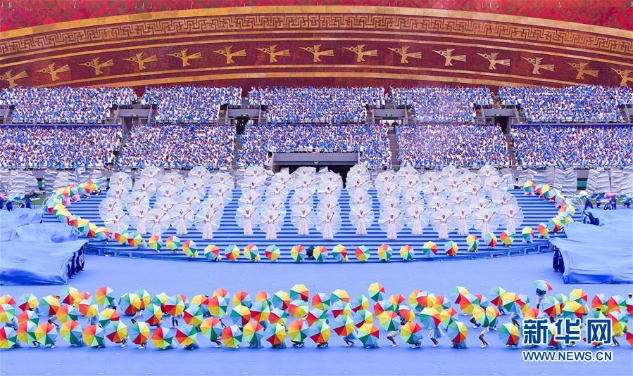 12月10日,廣西壯族自治區(qū)成立60周年慶祝大會在廣西體育中心隆重舉行。這是慶祝大會上的群眾文藝表演。 新華社記者 李鑫 攝