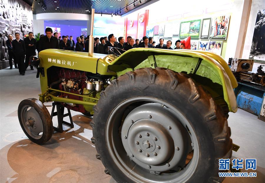 12月10日,觀眾在參觀廣西柳州20世紀60年代試制成功并生產(chǎn)的拖拉機。 當日,廣西壯族自治區(qū)成立60周年大型成就展在位于南寧的廣西規(guī)劃館開幕。 新華社記者 周華 攝