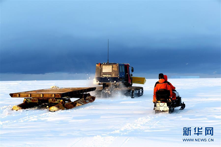 修路小組成員用雪地車裝備的鏟斗推平積雪(12月1日攝)。 搭載中國第35次南極科考隊的“雪龍”號極地考察船日前到達距離中山站44公里處的陸緣冰區(qū),準備迎來本次南極科考首場攻堅戰(zhàn)——物資卸運。一支探冰小組隨即展開海冰探路,以期盡快打通從“雪龍”號到中山站的冰上運輸線,盡早啟動冰上運貨。 新華社記者 劉詩平 攝