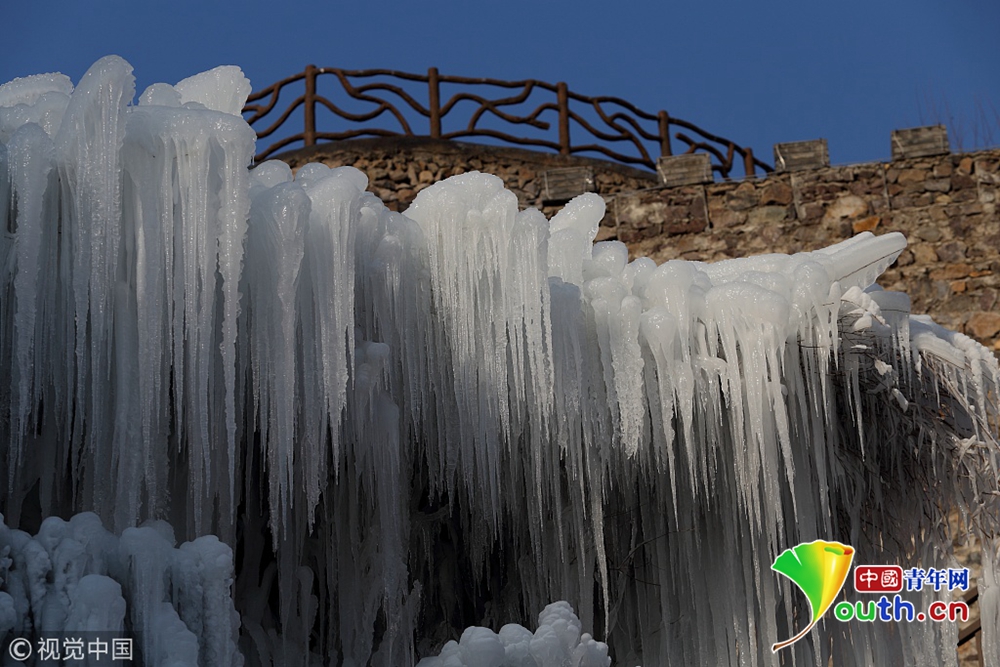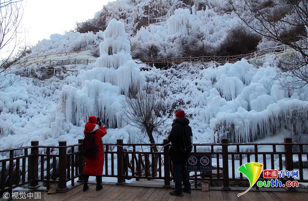 炭廠村神泉峽景區(qū)大面積人工冰瀑形成美麗的冰瀑景觀,預(yù)計12月19日正式向游客開放。