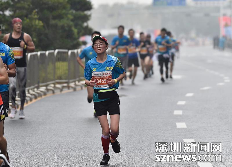 2018年12月16日,深圳國(guó)際馬拉松位于后海的折返點(diǎn),一家三口都參與了本次比賽,正向目標(biāo)沖刺。