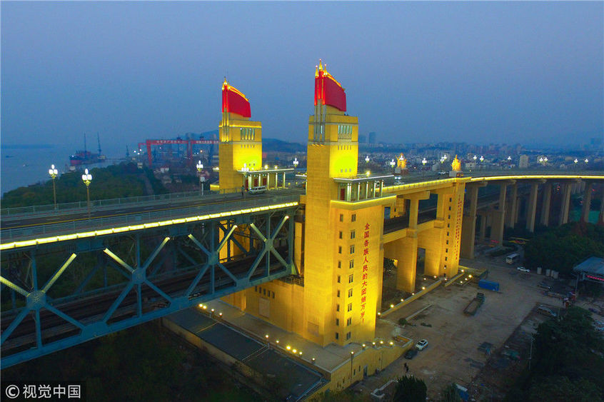 2016年10月28日晚,服役48年的南京長江大橋正式封閉,進(jìn)入合同工期長達(dá)27個月的改造提升期。身為我國橋梁建設(shè)領(lǐng)域的扛鼎之作,南京長江大橋的此次封閉改造牽涉到公路繁忙、鐵路風(fēng)險、技術(shù)攻關(guān)、文物保護等諸多難點,不僅影響面廣,而且社會關(guān)注度極高。如今,隨著整個工程進(jìn)入收尾階段,即將于2018年12月底正式通車。圖為2018年12月13日,夜幕降臨,南京長江大橋歸位后的玉蘭花燈重新點亮。大橋玉蘭花燈柱共有299根,每根燈柱上有5盞玉蘭花燈,1大4小,一共1495盞。