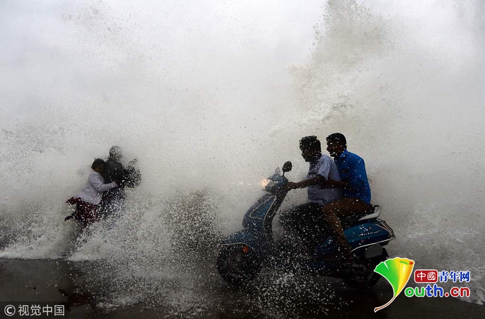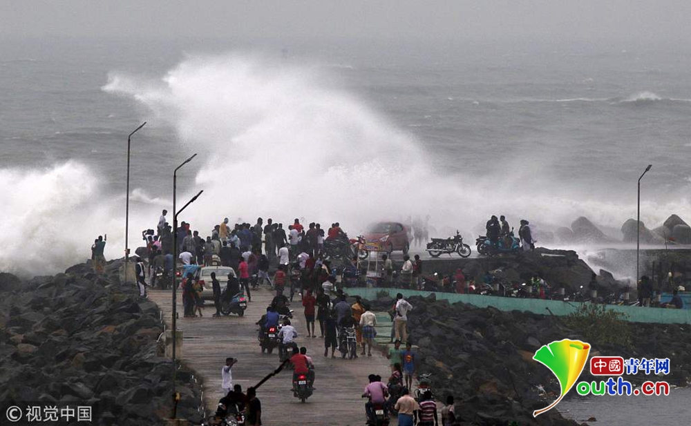 當(dāng)?shù)貢r間2018年12月16日,印度欽奈,颶風(fēng)“佩太”正向印度東海岸逼近,引發(fā)狂風(fēng)巨浪。
