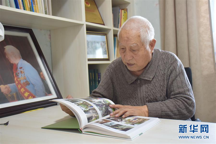 劉銘庭與妻子在烏魯木齊家中翻看過去的照片(12月10日攝)。