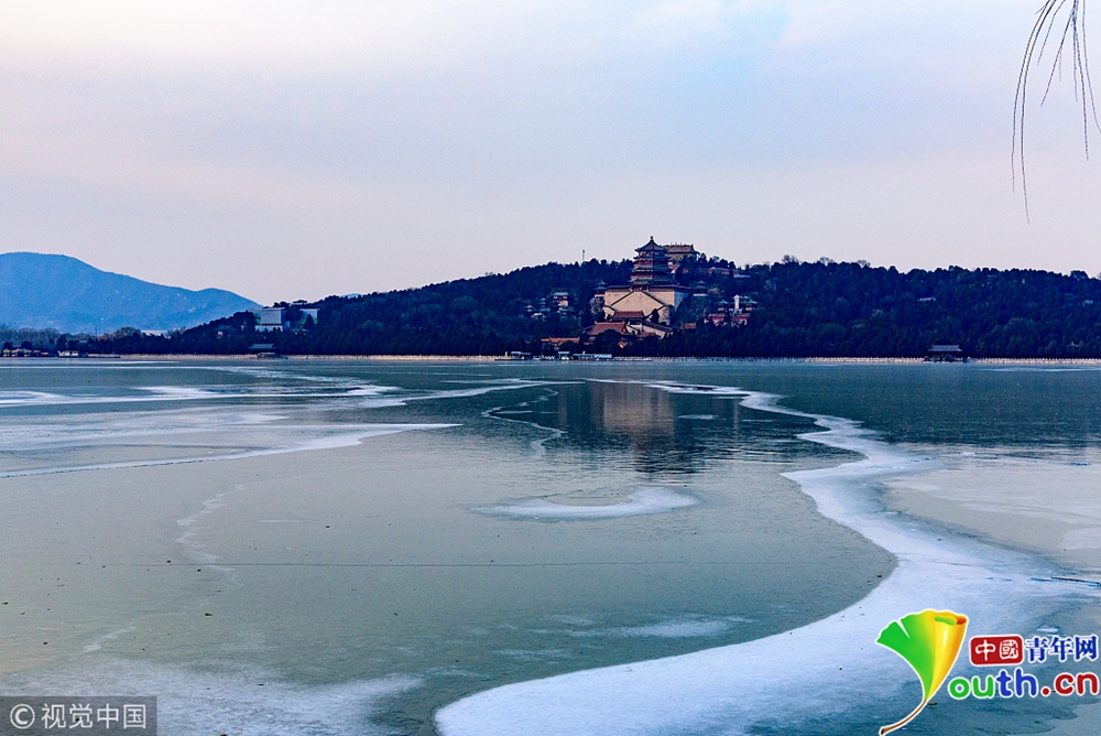 頤和園昆明湖已經(jīng)大面積結(jié)冰。