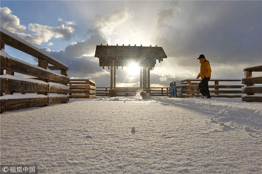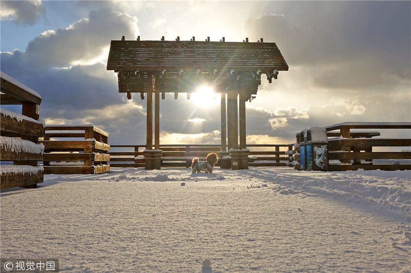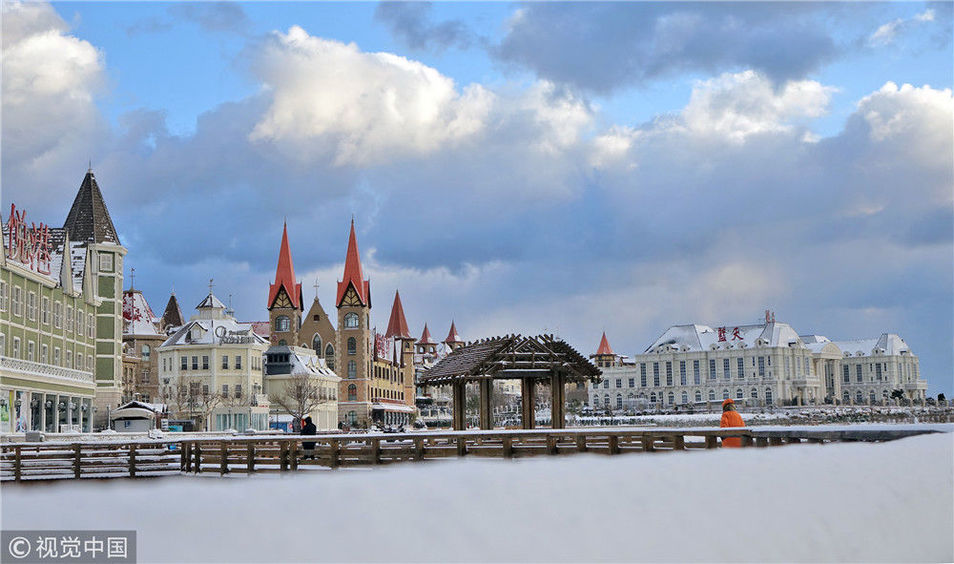 2018年12月7日,山東煙臺(tái),雪后的海濱景色。當(dāng)日煙臺(tái)迎來(lái)今冬首場(chǎng)降雪,海濱建筑在大雪的裝點(diǎn)下,形成海濱城市獨(dú)有的美麗雪景。地處膠東半島的煙臺(tái),冬季降雪量遠(yuǎn)高于地理位置相近的其他地區(qū),形成了獨(dú)特的海濱雪城,是中國(guó)著名的“雪窩”。唐克/視覺中國(guó)