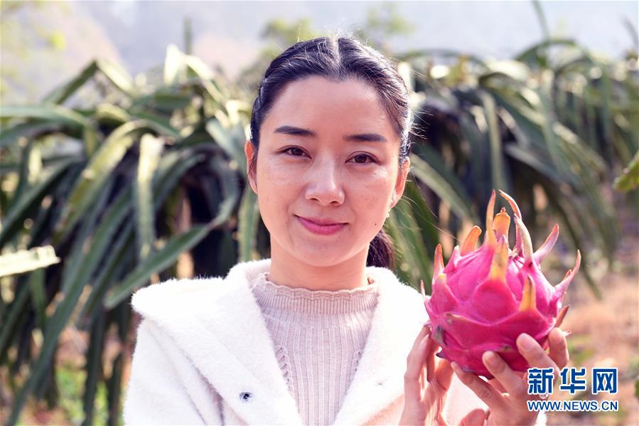 12月17日,徐慶在展示自己公司種植的火龍果。徐慶種植的火龍果出名,人又長得秀氣,被稱為“小龍女”。徐慶曾經(jīng)在昆明某雜志社當(dāng)過編輯,做過生意,生活舒適。2013年,徐慶來到東川投資,把大荒地村泥石流荒灘變成綠洲,2017年種植火龍果300畝獲得豐收。村民們把土地統(tǒng)一出租,除了收取地租外,還在徐慶的果園里打工掙錢。同時,村民把產(chǎn)業(yè)扶貧資金入股徐慶的公司,每年參與分紅。 新華社記者 楊宗友 攝