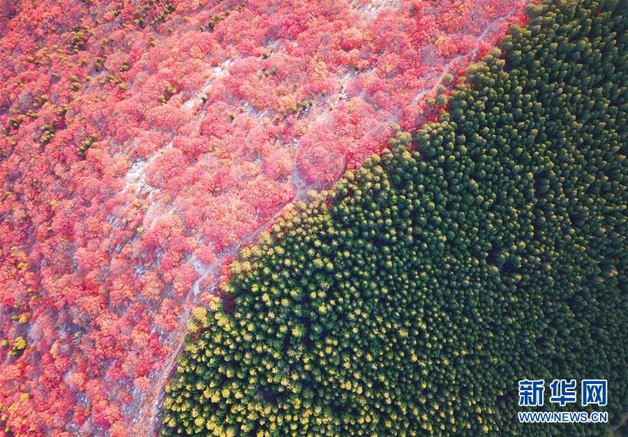 這是2018年10月31日航拍的山東濟(jì)南楔子山色彩分明的樹林。 大地之色,俯仰之間;壯美山河,是我的祖國。2018年,新華社記者操縱無人機(jī)“飛閱”華夏大地,在最美的時節(jié),定格下她的色彩斑斕。 新華社記者 朱崢 攝