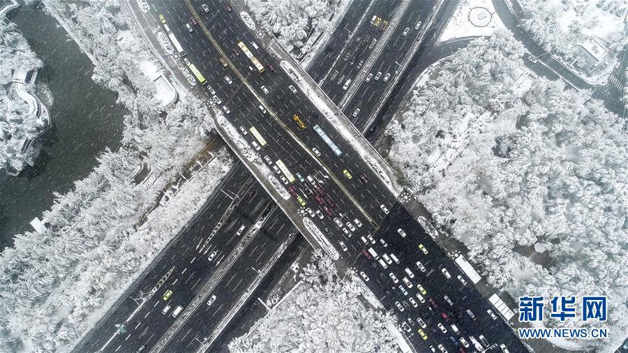 這是2018年10月18日航拍的雪后烏魯木齊西大橋。 大地之色,俯仰之間;壯美山河,是我的祖國。2018年,新華社記者操縱無人機(jī)“飛閱”華夏大地,在最美的時(shí)節(jié),定格下她的色彩斑斕。 新華社記者 江文耀 攝
