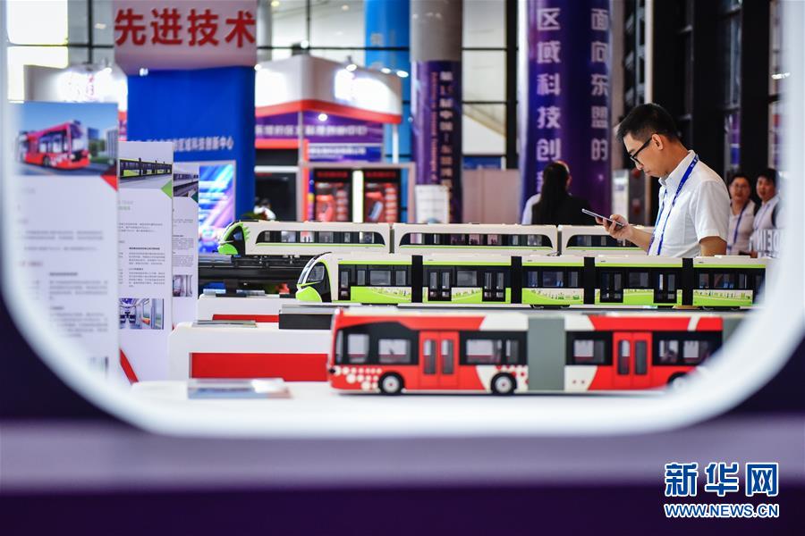 在廣西南寧國際會展中心展出的中車集團的新型公共交通車輛模型(9月13日攝)。