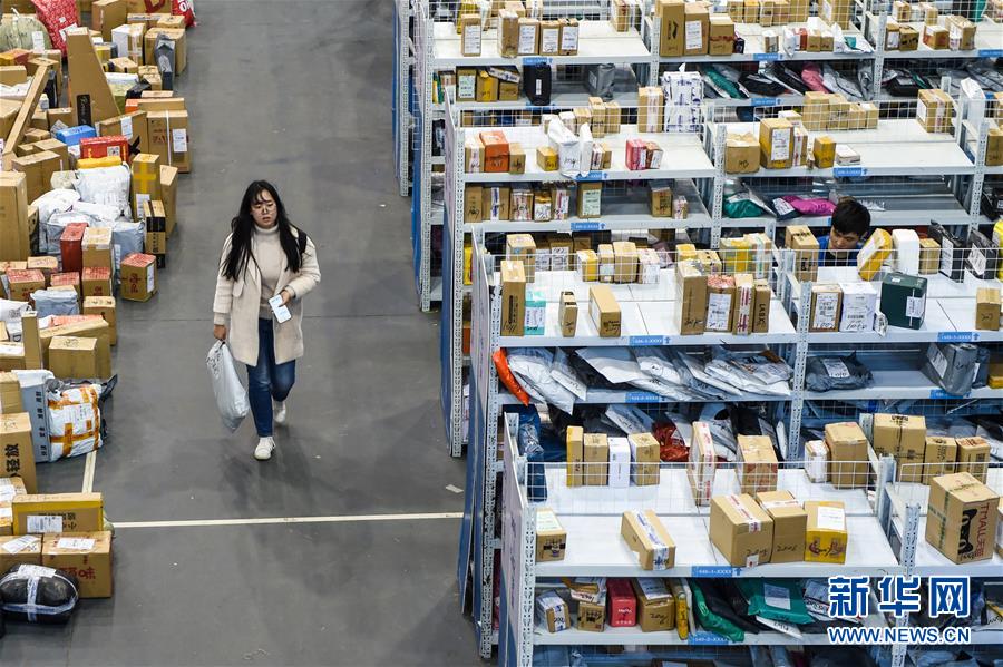 南京航空航天大學(xué)學(xué)生在校園臨時(shí)快遞取件點(diǎn)領(lǐng)取快遞(11月13日攝)。 新華社記者 李博 攝