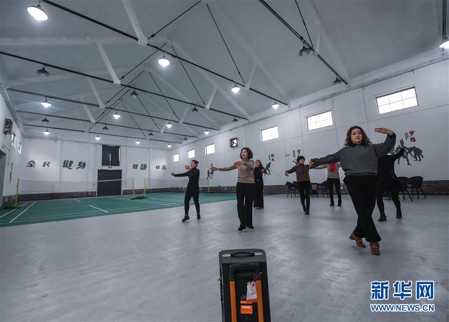 12月20日,村民們?cè)谂f糧倉(cāng)改建的室內(nèi)體育館內(nèi)排練廣場(chǎng)舞。 新華社記者 徐昱 攝