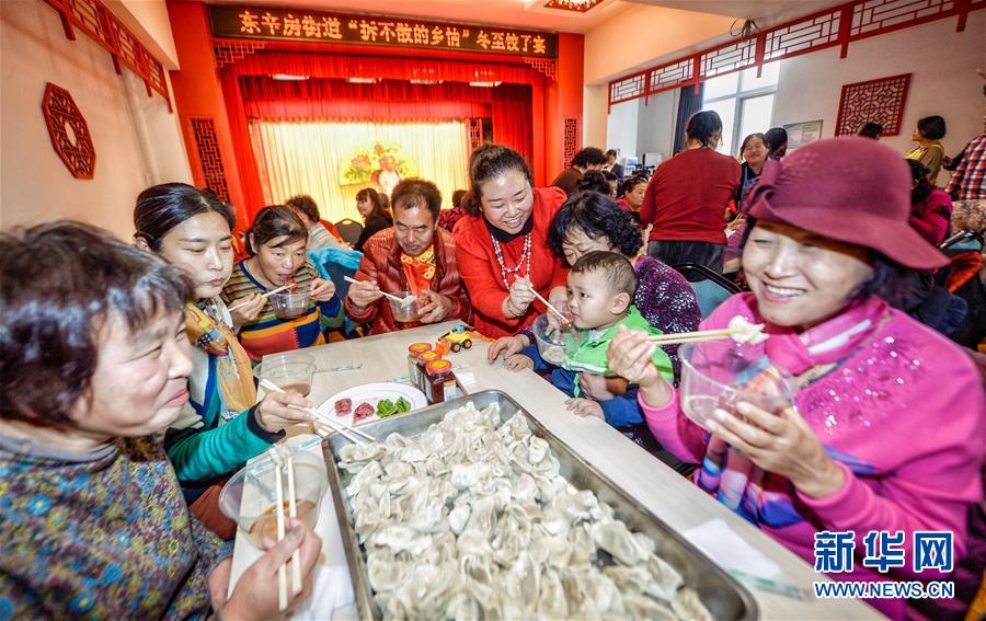 12月20日,老鄰居們一起吃餃子敘友情。 當(dāng)日,北京市門頭溝區(qū)東辛房街道一百多名棚戶區(qū)改造后搬進(jìn)新樓房的老鄰居們聚在一起包餃子、吃餃子,迎接即將到來的冬至。 新華社記者李欣攝