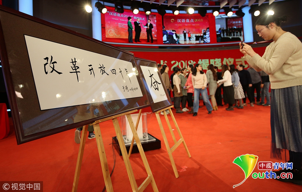 12月20日,國(guó)家語(yǔ)言資源監(jiān)測(cè)與研究中心、商務(wù)印書(shū)館、央視新聞等單位聯(lián)合舉辦的“漢語(yǔ)盤點(diǎn)2018”揭曉儀式在北京舉行。圖片來(lái)源:視覺(jué)中國(guó)