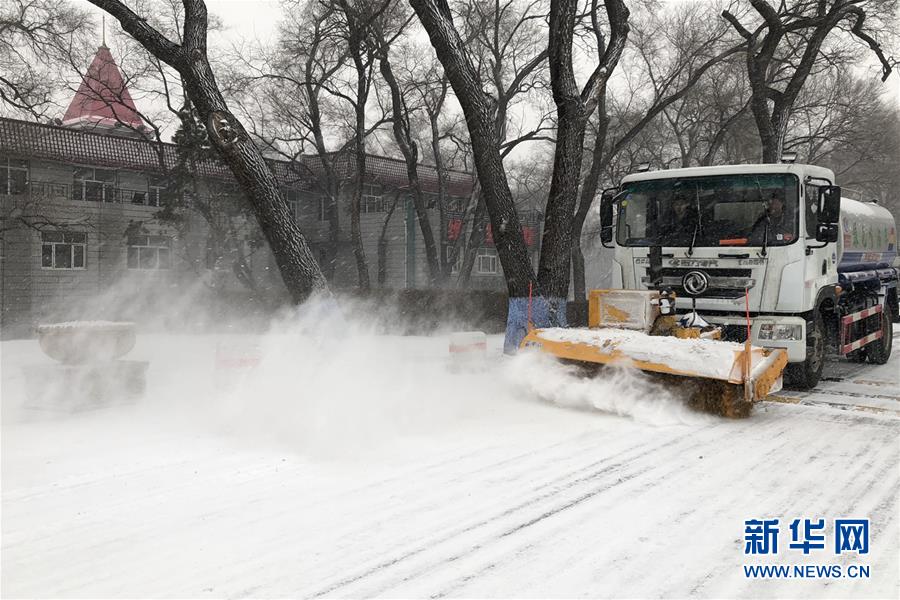 12月21日,清雪車輛在哈爾濱城區(qū)一條道路進行清雪作業(yè)。當日,“冰城”哈爾濱迎來降雪天氣,整個城市變得銀裝素裹。新華社記者曹霽陽攝