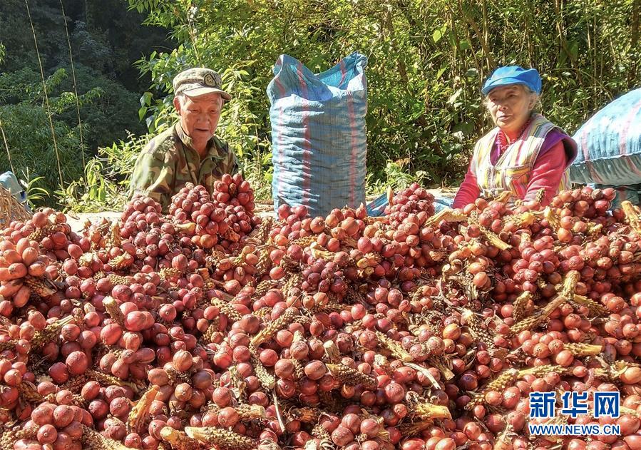 獨(dú)龍江鄉(xiāng)馬庫(kù)村村民在整理收獲的草果,準(zhǔn)備賣到外地市場(chǎng)(2018年11月10日攝)。 新華社發(fā)(楊時(shí)平 攝)