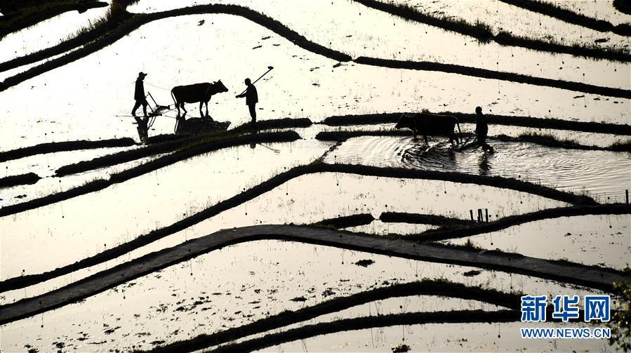 4月10日清晨,湖北省蘄春縣霧云山村的農(nóng)民在梯田勞作。 在即將過(guò)去的2018年,各地?cái)z影師用鏡頭記錄下四季中國(guó)。大江南北,一幅幅色彩斑斕的美麗畫卷徐徐展開。 新華社記者 程敏 攝
