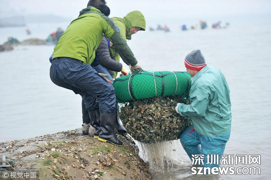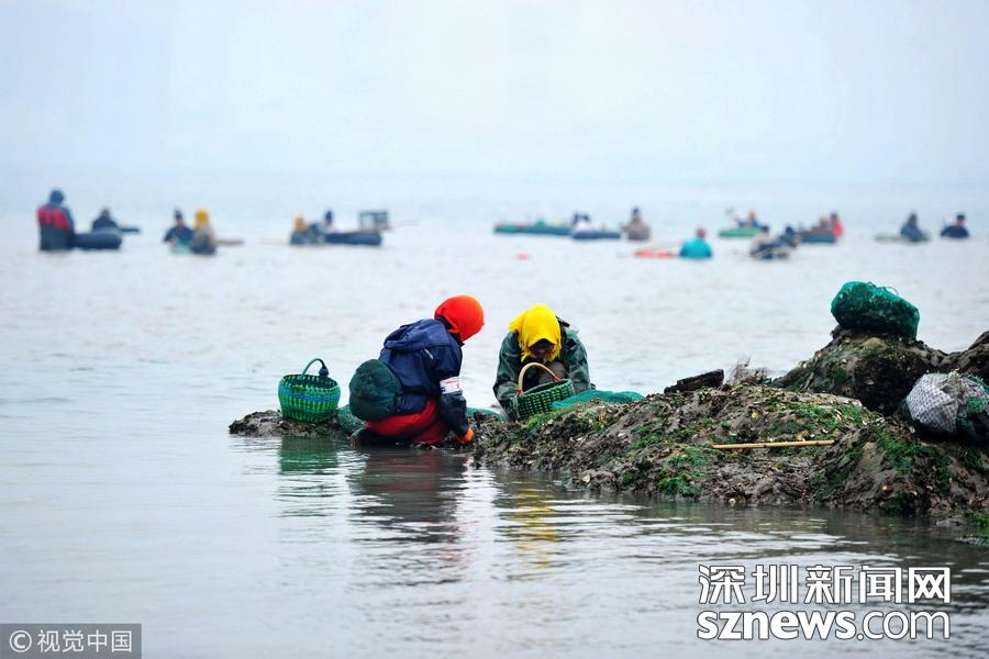深圳新聞網(wǎng)2018年12月25日訊 二十四節(jié)氣冬至適逢天文大潮,西海岸新區(qū)唐島灣南岸,來自附近十余公里甚至青島市區(qū)的市民來到退潮后的灣底,在齊腰深的海水中挖拾牡蠣(海蠣子)或在沙灘上挖拾蛤蜊。經(jīng)過近2個(gè)多小時(shí)的辛勤勞作,市民們收獲滿滿返回。