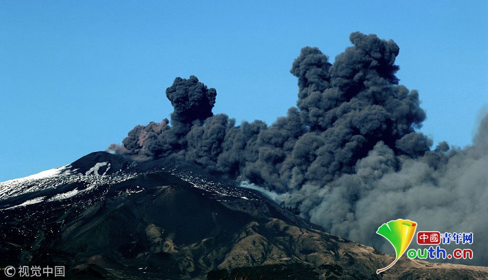 意大利埃特納火山持續(xù)噴發(fā) 黑煙滾滾