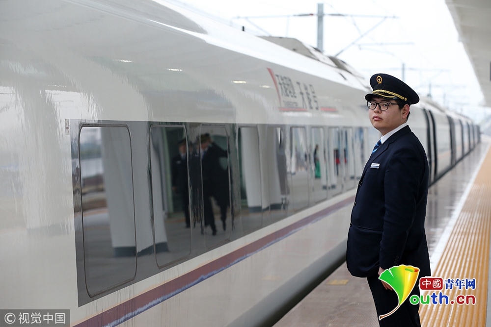 12月25日,杭黃高鐵D9551次首發(fā)列車即將從杭州東站駛出。