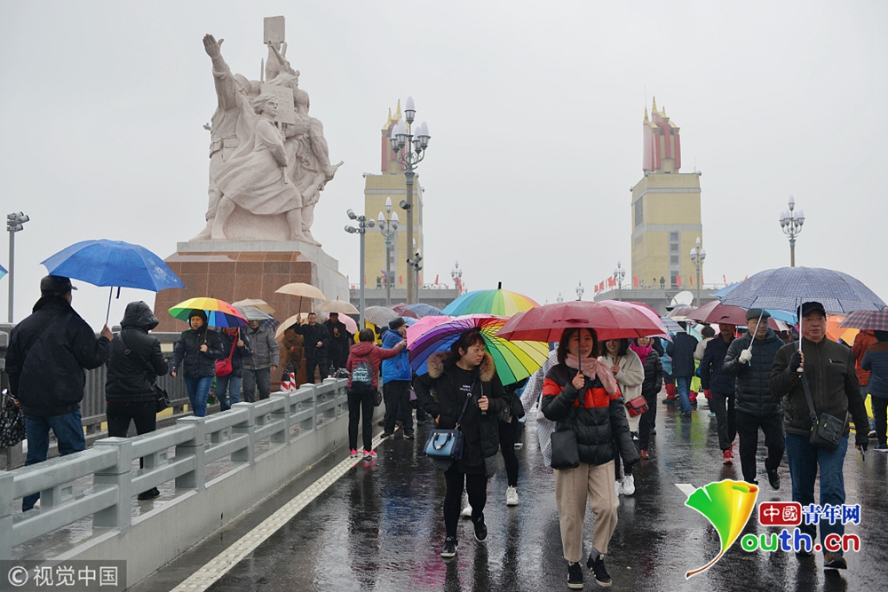 人們?cè)跇蛏虾蜆虮ぬ?,邊走邊看、不時(shí)的駐足拍照和合影,感受全新“整容”后煥然一新的南京長(zhǎng)江大橋。