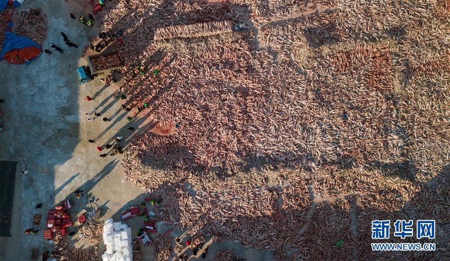12月27日,在吉林松原查干湖漁場,工人們將魚裝箱(無人機拍攝)。 隨著吉林松原查干湖冬捕知名度不斷提高,全國各地消費者對查干湖魚的需求量逐年增大。2014年開始,多個電商平臺和快遞企業(yè)紛紛抓住商機進駐查干湖。經(jīng)過多年發(fā)展,借助互聯(lián)網(wǎng)銷售優(yōu)勢和日趨完善的快遞網(wǎng)絡(luò),全國多地的百姓可以在魚出水后的48小時內(nèi)品嘗到查干湖魚的鮮美滋味。 新華社記者張楠攝