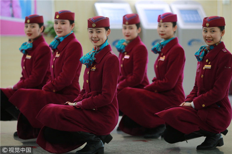 2018年12月27日,四川成都,為備戰(zhàn)即將開通的成雅鐵路,中國鐵路成都局集團有限公司成都客運段動車二隊對成雅動車的乘務(wù)人員進(jìn)行理論、形體、服務(wù)禮儀等內(nèi)容的培訓(xùn)。