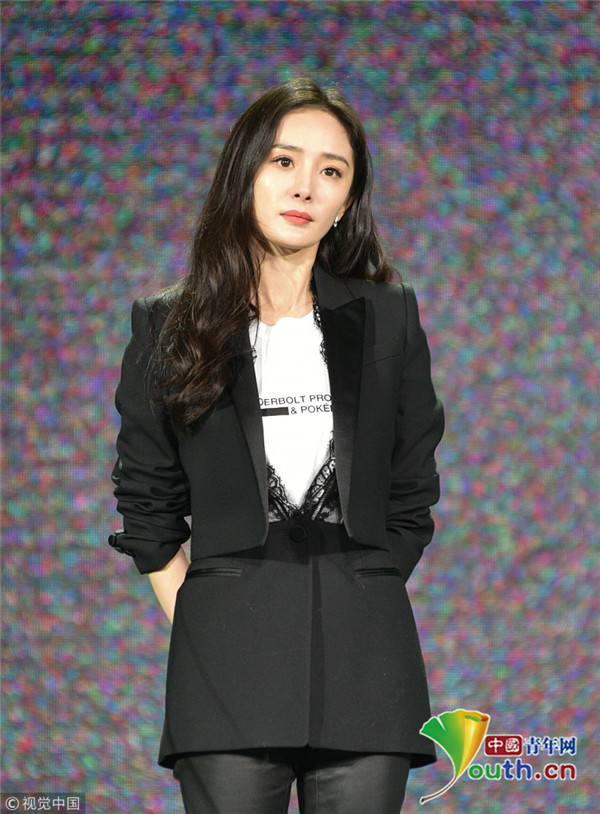 楊冪上臺領(lǐng)獎西裝精致干練 談話間舉手顯呆萌
