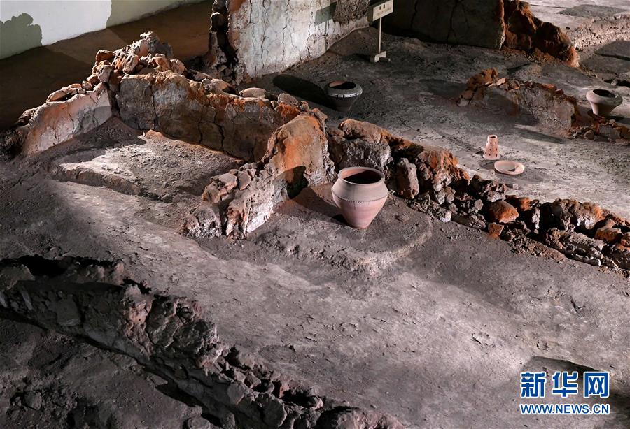 這是河南鄭州大河村遺址博物館內(nèi)的仰韶文化房基(12月11日攝)。