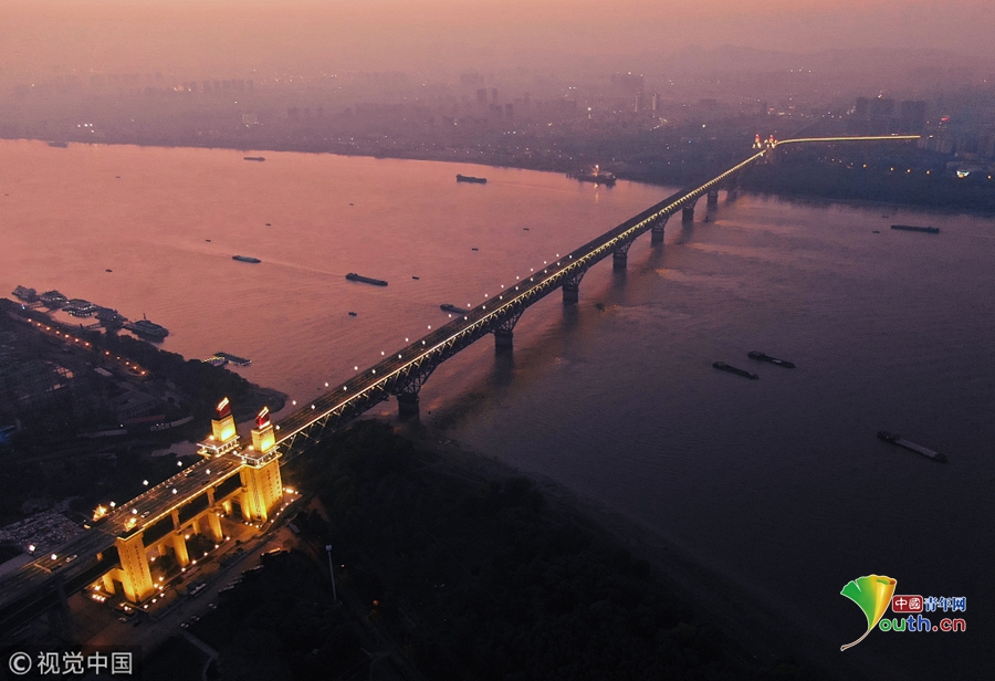 2018年12月13日,江蘇南京,“一橋飛架南北,天塹變通途。”作為我國第一座自行設計和建造的雙層鐵路、公路兩用橋,南京長江大橋在我國橋梁史上的重要地位不言而喻。從1968年建成后的48年間,它就如同一條巨龍,始終在長江上默默守護著人來車往。南京長江大橋上層是公路橋,下層為雙軌復線鐵路橋,連接津浦鐵路與滬寧鐵路干線,是我國南北交通要津和命脈。近年來,由于南京長江大橋公路橋的實際通行荷載遠超原先設計標準,不僅橋面上擁堵?,F(xiàn),橋梁本身的種種“病害”也日益加深。圖為2018年12月13日,夜幕降臨,南京長江大橋歸位后的玉蘭花燈重新點亮。大橋玉蘭花燈柱共有299根,每根燈柱上有5盞玉蘭花燈,1大4小,一共1495盞。方東旭/視覺中國