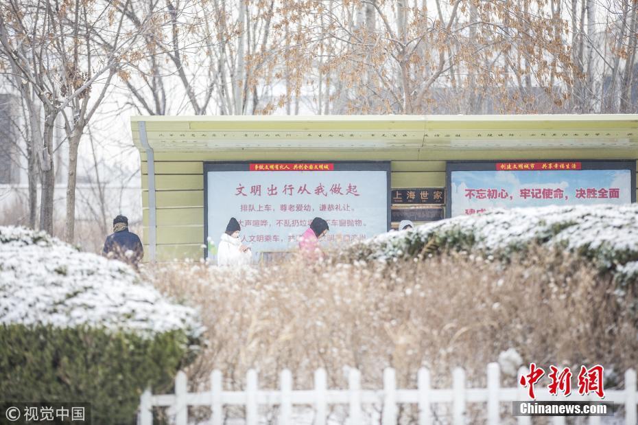 山東濱州發(fā)布道路結(jié)冰黃色預(yù)警信號(hào)市區(qū)出現(xiàn)較明顯降雪,路表溫度低于0℃。圖片來源:視覺中國