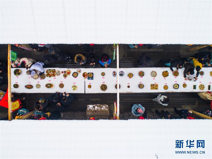 12月31日,廚師把一道剛剛烹飪完成的傳統(tǒng)美食擺上長桌。新華社記者徐昱攝
