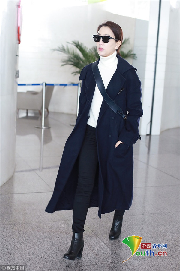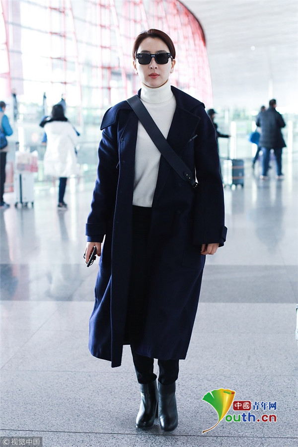 2019年1月7日,北京,馬蘇現(xiàn)身機場。她身穿黑色到腳大衣霸氣外露,架黑超涂紅唇似帥氣“女特工”。