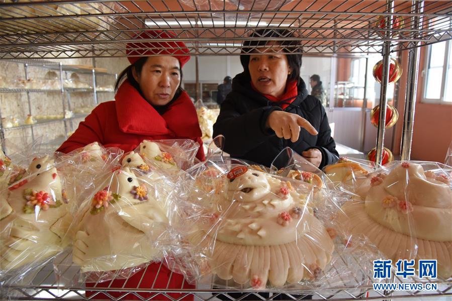 1月8日,工作人員在手工制作花餑餑。 新華社記者 丁洪法 攝