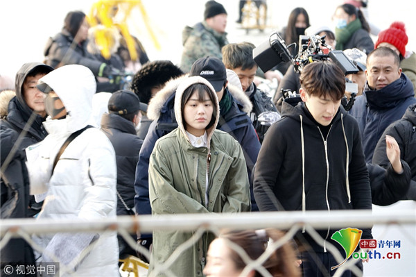 2019年1月9日,北京,鄧倫、馬思純現(xiàn)身后?;鶊?,騎冰車拍攝新劇《加油你是最棒的》。寒冷的北京,二人身著單薄的劇中服裝現(xiàn)身拍攝片場,不顧嚴(yán)寒超敬業(yè)。
