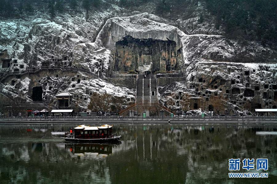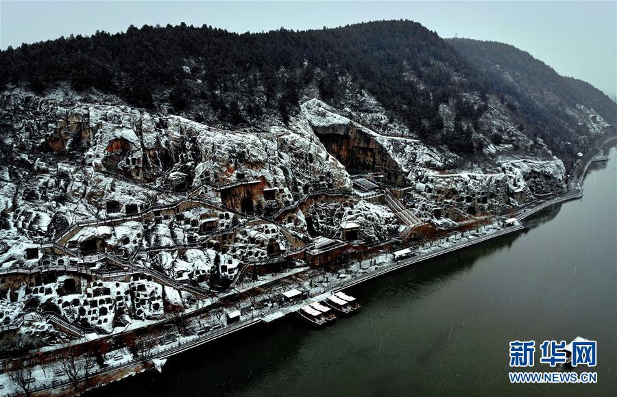 當(dāng)日,雪后的河南洛陽龍門石窟景區(qū)銀裝素裹,一幅天然的水墨畫卷徐徐展開。