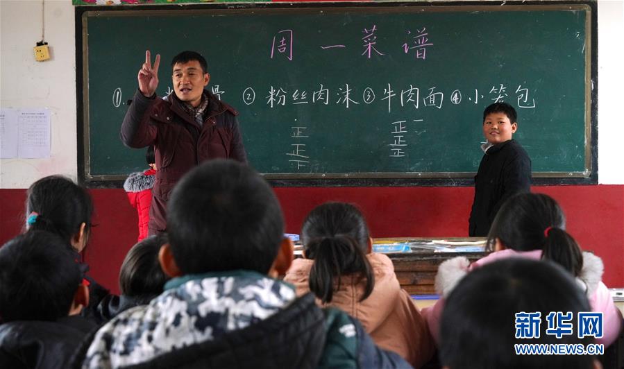 1月4日,章站亮(左)和學(xué)生們召開“每日食譜選舉會”,共同選出下次學(xué)生們想吃的餐點。 新華社記者 胡晨歡 攝