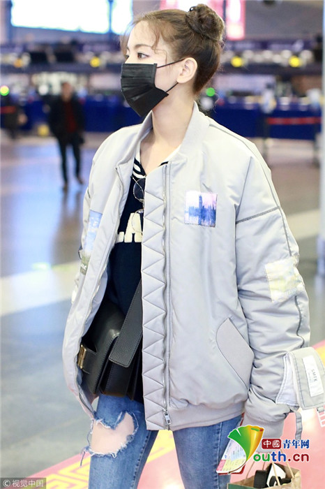 2019年1月14日,北京,楊超越現(xiàn)身機(jī)場(chǎng)。她扎哪吒頭活力十足,甩玩偶淘氣回眸,穿破洞褲露美腿,披面包服似自帶鼓風(fēng)機(jī)。