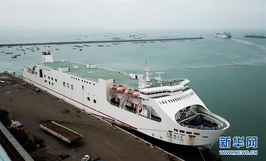 ??吭诤?谀细鄞a頭的粵海鐵4號客滾船(1月15日無人機拍攝)。新華社記者 楊冠宇 攝