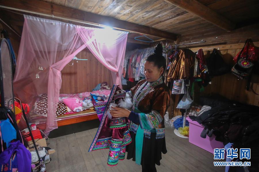 貧困戶住進(jìn)“復(fù)原”的房子,保持了熟悉的生活生產(chǎn)習(xí)慣,生活質(zhì)量大幅提高,并在參與景區(qū)演出、田園管理等工作中獲得穩(wěn)定收入。夢嗚苗寨計劃一共搬入100戶貧困戶,目前已完成12戶42名建檔立卡貧困人員的搬遷工作。 新華社記者 陳君清 攝
