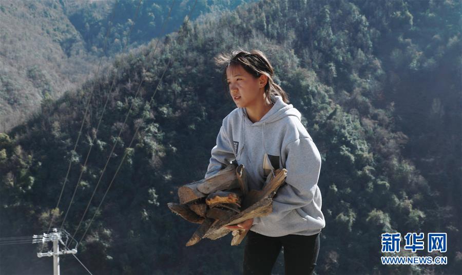 1月24日,在云南省蘭坪縣,褚福妹搬運(yùn)柴火準(zhǔn)備燒飯。