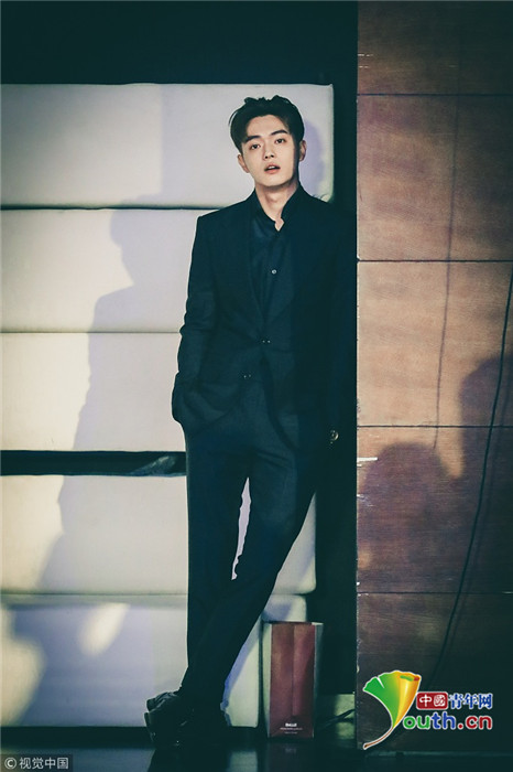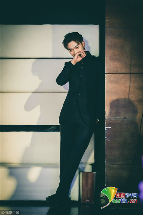 2月11日,北京,某電影發(fā)布會,許凱現(xiàn)身,他身穿深色西裝大秀長腿,捂嘴偷笑帥氣逼人。