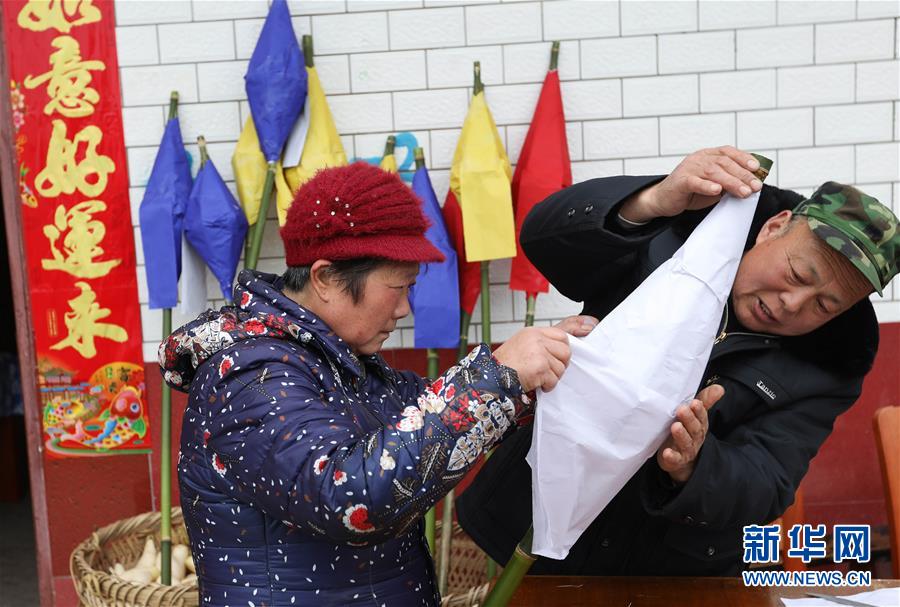 2月18日,在四川省南充市嘉陵區(qū)金寶鎮(zhèn)和祥社區(qū),65歲的李樹會(huì)(右)和老伴制作“蠐蟆燈”。 當(dāng)日是農(nóng)歷正月十四,夜幕降臨后,川渝等地?cái)?shù)萬名群眾在四川省南充市嘉陵區(qū)金寶鎮(zhèn)匯聚,點(diǎn)亮“蠐蟆燈”,敲著鑼鼓唱著歌謠,將“蠐蟆”送到幾公里外的田邊或者河邊燒掉,祈福健康平安。星星點(diǎn)點(diǎn)的燈光在鄉(xiāng)間小路閃爍移動(dòng),場面壯觀熱烈。 “送蠐蟆”祈福這一習(xí)俗源于清朝,歷經(jīng)演變成為川東北地區(qū)一個(gè)古老而神秘的地方民俗節(jié)日。 新華社記者 江宏景 攝