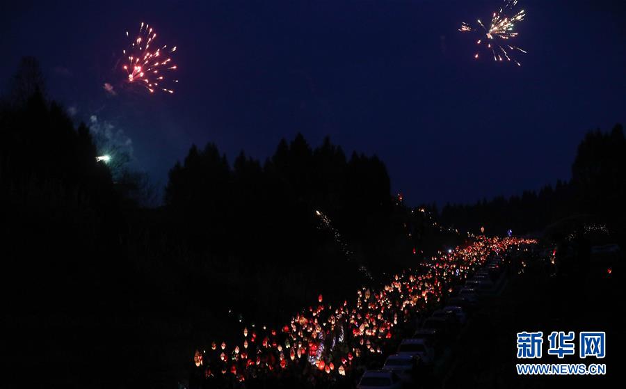2月18日,群眾在四川省南充市嘉陵區(qū)金寶鎮(zhèn)點(diǎn)亮“蠐蟆燈”。 當(dāng)日是農(nóng)歷正月十四,夜幕降臨后,川渝等地?cái)?shù)萬名群眾在四川省南充市嘉陵區(qū)金寶鎮(zhèn)匯聚,點(diǎn)亮“蠐蟆燈”,敲著鑼鼓唱著歌謠,將“蠐蟆”送到幾公里外的田邊或者河邊燒掉,祈福健康平安。星星點(diǎn)點(diǎn)的燈光在鄉(xiāng)間小路閃爍移動(dòng),場面壯觀熱烈。 “送蠐蟆”祈福這一習(xí)俗源于清朝,歷經(jīng)演變成為川東北地區(qū)一個(gè)古老而神秘的地方民俗節(jié)日。 新華社記者 江宏景 攝