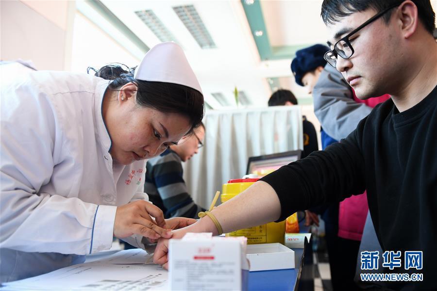2月24日,在錫林郭勒盟中心血站,工作人員在為前來獻(xiàn)血的志愿者檢驗(yàn)血型。 內(nèi)蒙古自治區(qū)錫林郭勒盟“2·23”重大事故傷者正在錫林郭勒盟醫(yī)院、錫林郭勒盟蒙醫(yī)醫(yī)院接受救治。因用血需求量大,當(dāng)?shù)匮獛?kù)庫(kù)存一度低于警戒線。在當(dāng)?shù)卣h下,各單位職工、市民紛紛前往錫林郭勒盟中心血站獻(xiàn)血。截至24日16時(shí),已有220余名志愿者完成獻(xiàn)血,采集全血6.8萬毫升,機(jī)采血小板9個(gè)治療量。 新華社記者 劉磊 攝