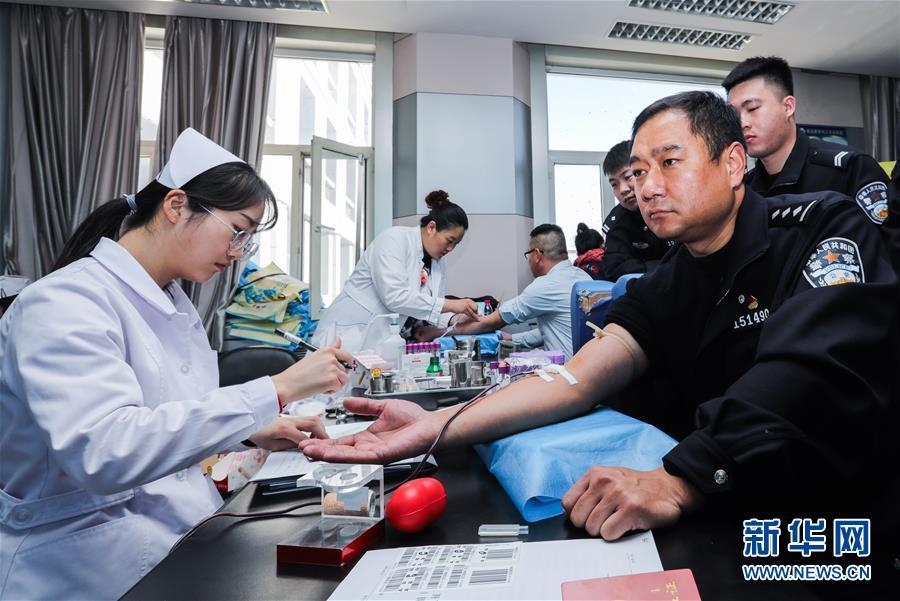 2月24日,在錫林郭勒盟中心血站,內(nèi)蒙古錫林郭勒邊境管理支隊(duì)民警在獻(xiàn)血。 內(nèi)蒙古自治區(qū)錫林郭勒盟“2·23”重大事故傷者正在錫林郭勒盟醫(yī)院、錫林郭勒盟蒙醫(yī)醫(yī)院接受救治。因用血需求量大,當(dāng)?shù)匮獛?kù)庫(kù)存一度低于警戒線。在當(dāng)?shù)卣h下,各單位職工、市民紛紛前往錫林郭勒盟中心血站獻(xiàn)血。截至24日16時(shí),已有220余名志愿者完成獻(xiàn)血,采集全血6.8萬毫升,機(jī)采血小板9個(gè)治療量。 新華社記者 劉懿德 攝
