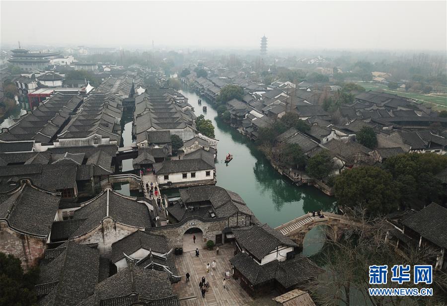2月25日,游人在烏鎮(zhèn)游覽觀光(無(wú)人機(jī)拍攝)。 隨著氣溫升高,浙江省桐鄉(xiāng)市烏鎮(zhèn)景區(qū)春意萌動(dòng)。 新華社記者翁忻旸攝