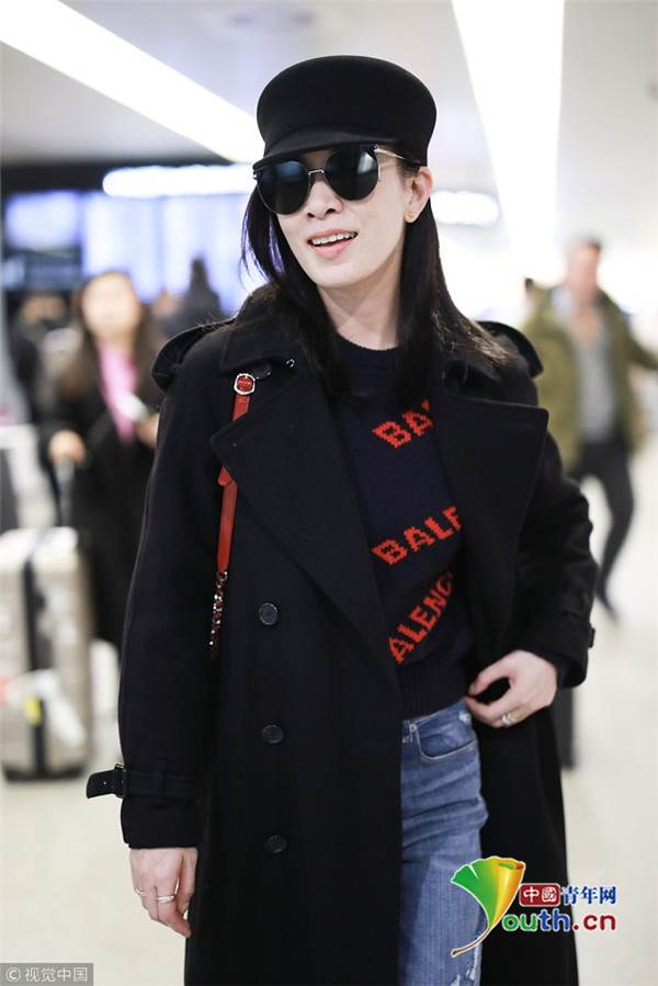 2019年2月28日,上海,佘詩(shī)曼現(xiàn)身機(jī)場(chǎng)。她頭戴禮帽,身穿黑色大衣走路帶風(fēng)氣場(chǎng)強(qiáng),單手托腮甜笑瞬間暖人心。